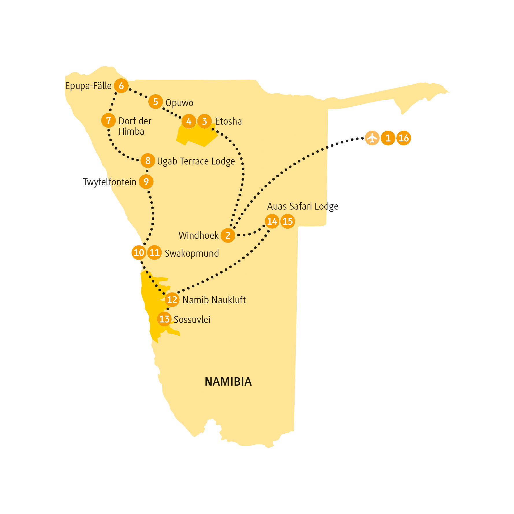 Heute startet dein Flieger nach Namibia, ins Land der unendlichen Weite.