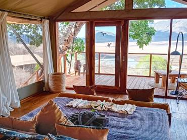 Mehr Natur als im Ngorongoro Wildcamp im Süden des berühmten Schutzgebietes geht nicht. Im zaunlosen Camp inmitten von Bäumen schläfst du in komfortablen Safarizelten auf Holzplattformen mit eigenem Bad. Der traumhafte Ausblick von deiner Veranda reicht bis zum Eyasi-See. Um Zebras, Giraffen und Honigdachse zu sehen, brauchst du den Blick aber gar nicht in die Ferne schweifen lassen, weil die nämlich auch direkt im Camp vorbeikommen.